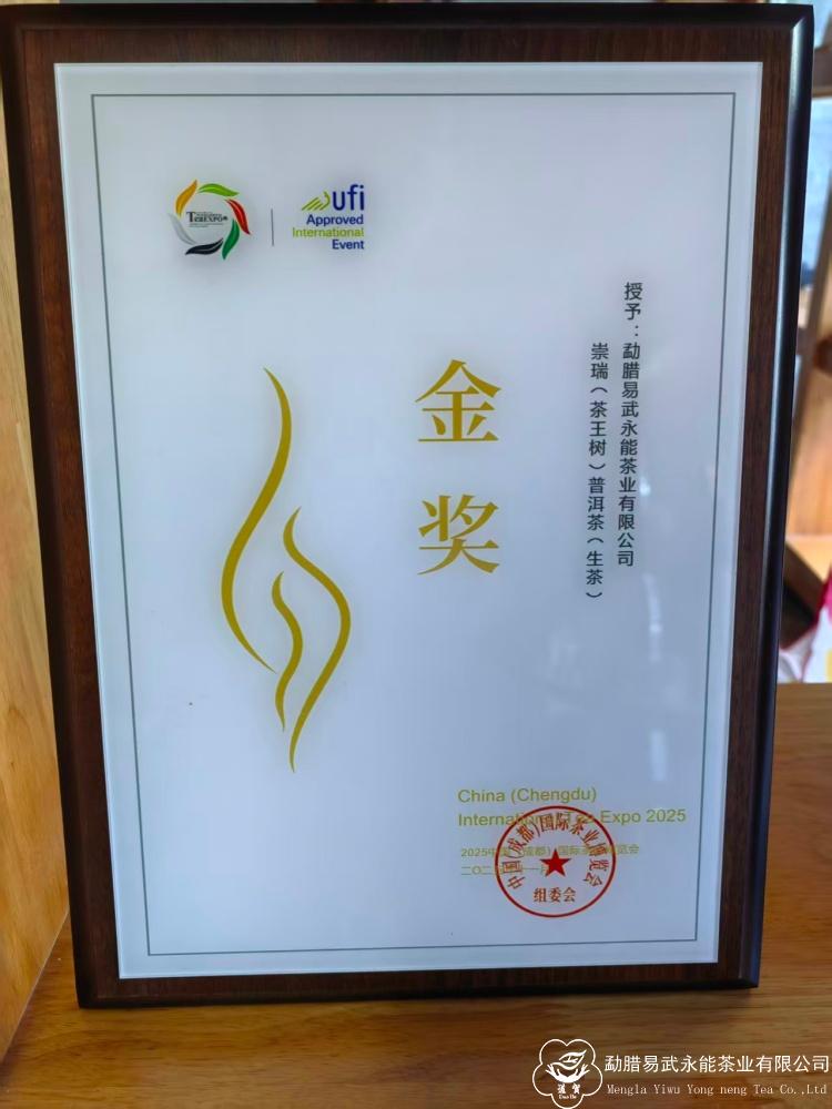 中国成都(秋季)国际茶叶博览会,于2025年11月7日,在成都世纪城展览馆举办。我公司的产品,无论是生茶、熟茶还是中期茶,都得到了成都各界爱茶人士的肯定和高度赞赏!特别是我们选送参赛的两款易武山头茶 崇瑞(天门山)普洱茶(生茶)、崇瑞(茶王树)普洱茶(生茶),更是荣获“金奖”殊荣!